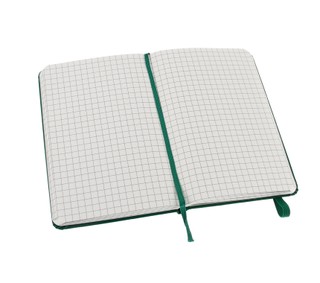 Žalios spalvos viršelis, lapai langeliais, o gale rasite vidinę kišenėlę, kurioje patogu laikyti vizitines korteles ar kitus užrašus.