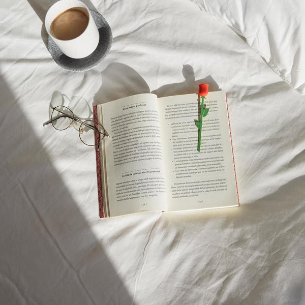 FUNKCIONALU IR ŽAISMINGA. Gėlės viršūnė matoma virš knygos, todėl lengva rasti reikiamą puslapį. Žavinga detalė, kuri skaitymą paverčia dar malonesniu.