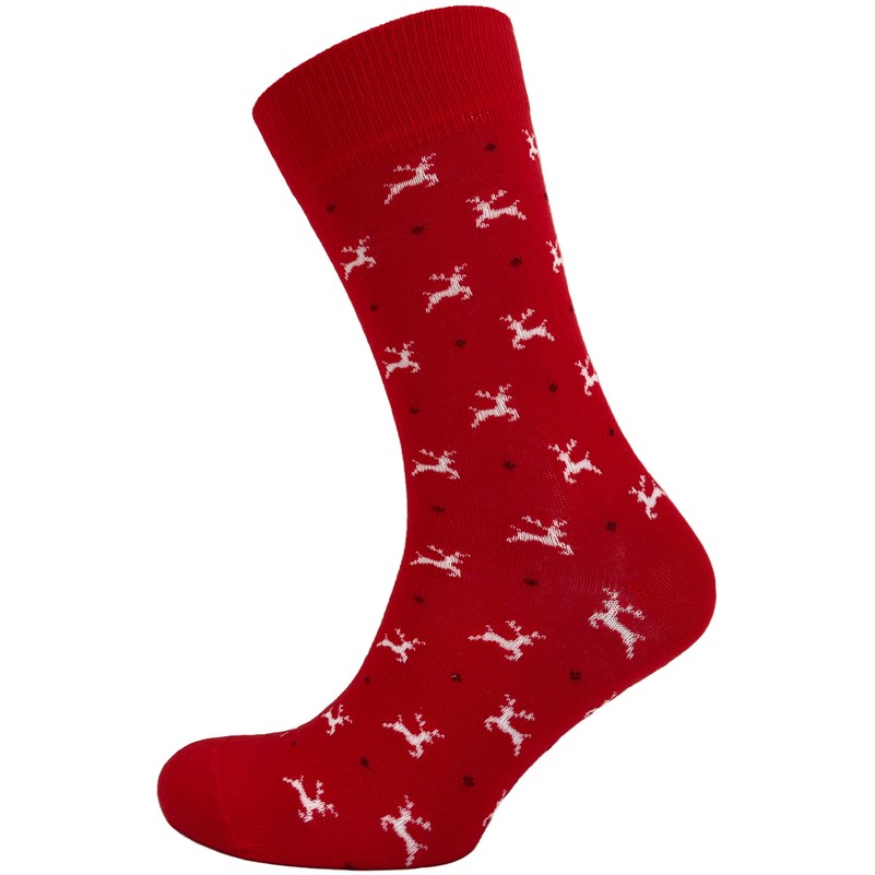 Vyriškos kalėdinės kojinės su šventiniais motyvais. Kojinės patogiai priglunda, todėl leis šiltai pasitikti ateinančias šventes ar net taps miela dovana. Spalva: raudona. Ilgis: vidutinio ilgio kojinės. Stilius: spalvotos kojinės. Sudėtis: 85% šukuotinės medvilnės, 18% poliamidinio pluošto, 2% elastano. Dydis: 41–46.