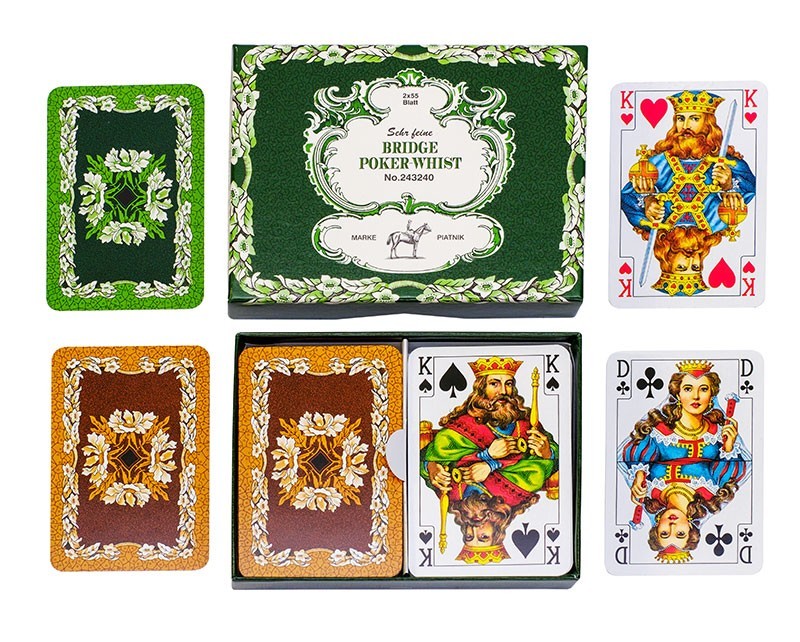 Du kortų rinkiniai, pagaminti Vienos fabrike specialiai lenkų šio prieškarinio dizaino gerbėjams, anksčiau buvę prieinami tik kaip vieni rinkiniai. Tai yra vienos iš pačių atpažįstamiausių Piatniko kortų, kurias jau vertino Pilsudskis. Šiandien jos kartais vadinamos Pewex, pagal parduotuvių, kuriose žaidėjai galėjo gauti šią retą prekę komunizmo laikotarpiu, pavadinimą. Gražūs piešiniai ant aversų, būdingi ąžuolo lapai ant reversų ir pakuotės. Rinkinį sudaro 55 plastikinės kortos,…