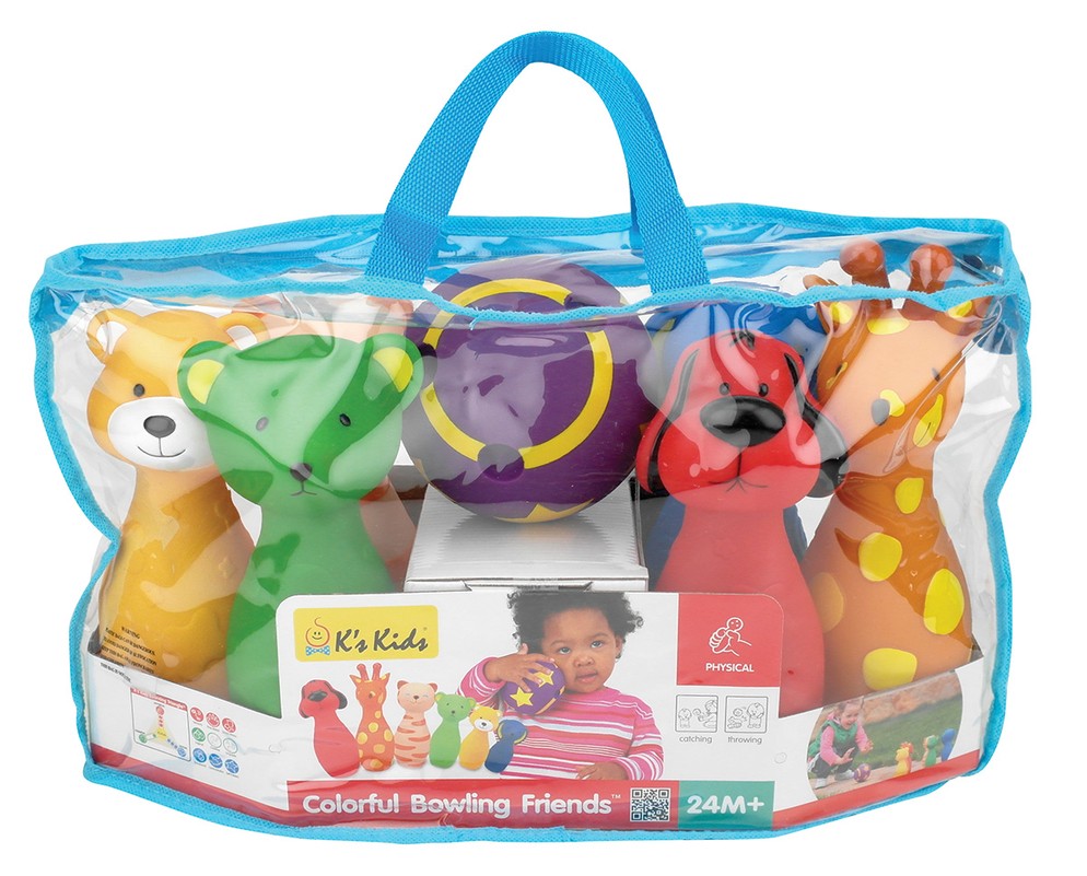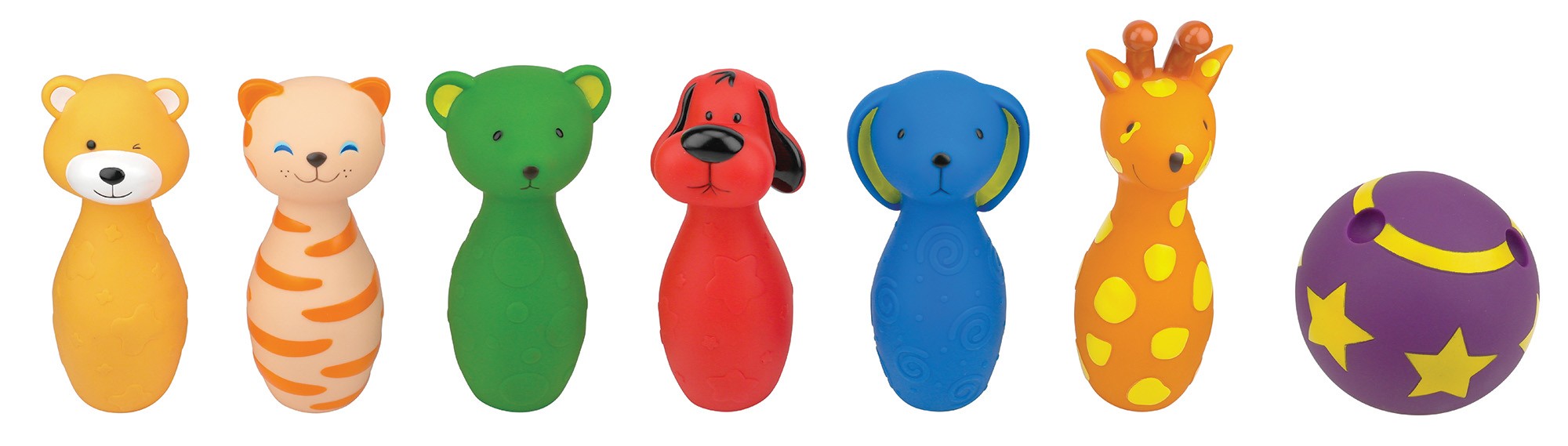 Šiame rinkinyje yra 1 kamuoliukas ir 6 žavūs gyvūnėliai-kėgliai, puikiai tinkantys kūdikių motoriniams įgūdžiams, pusiausvyrai ir socialinei sąveikai lavinti. Kiekvieno kėglio skersmuo – 5 cm, o aukštis – 19 cm. Tegul prasideda linksmybės!