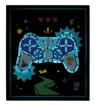 Sukurkite neoninį paveikslo rėmelį su vaizdo žaidimų pulteliu, kad papuoštumėte savo kambarį.