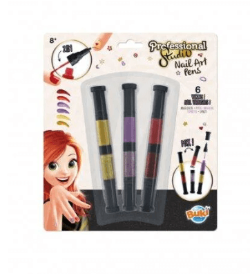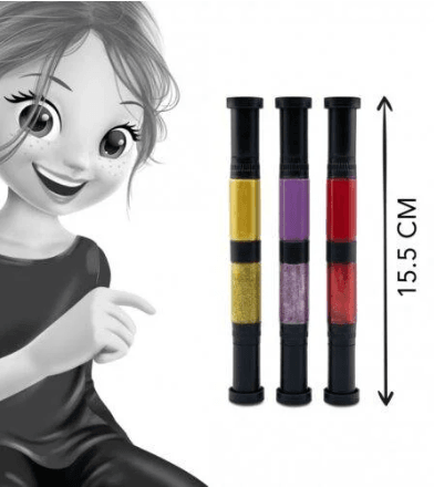 Rinkinyje esantys spalvoti dvipusiai nagų lakai – turi ploną galiuką piešimui ir storą teptuką lakavimo pusėje, todėl lengvai sukursite linijas, raštus, taškelius ar kitus dekorus. Puikiai tinka tiek pradedančioms, tiek jau mėgstančioms nagų meną mergaitėms.