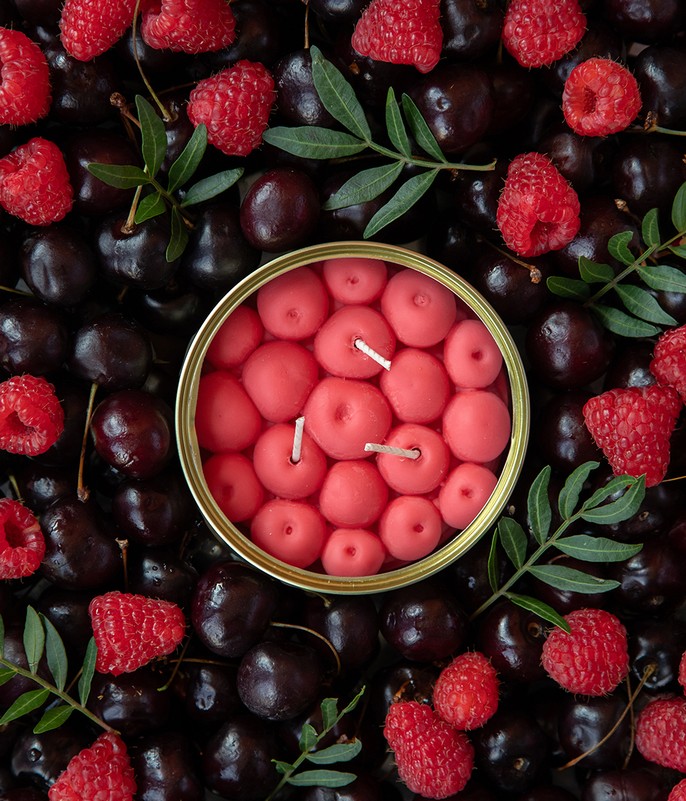 Pamirškite vyšnias ant viršaus – susipažinkite su vyšniomis skardinėje. Ši gurmaniška žvakė malonumas kiekvieno skoniui – ji pagaminta iš natūralaus augalinio vaško, skleidžia subtilų vaisių kvapą ir tikrai puikiai dera ant jūsų stalo.