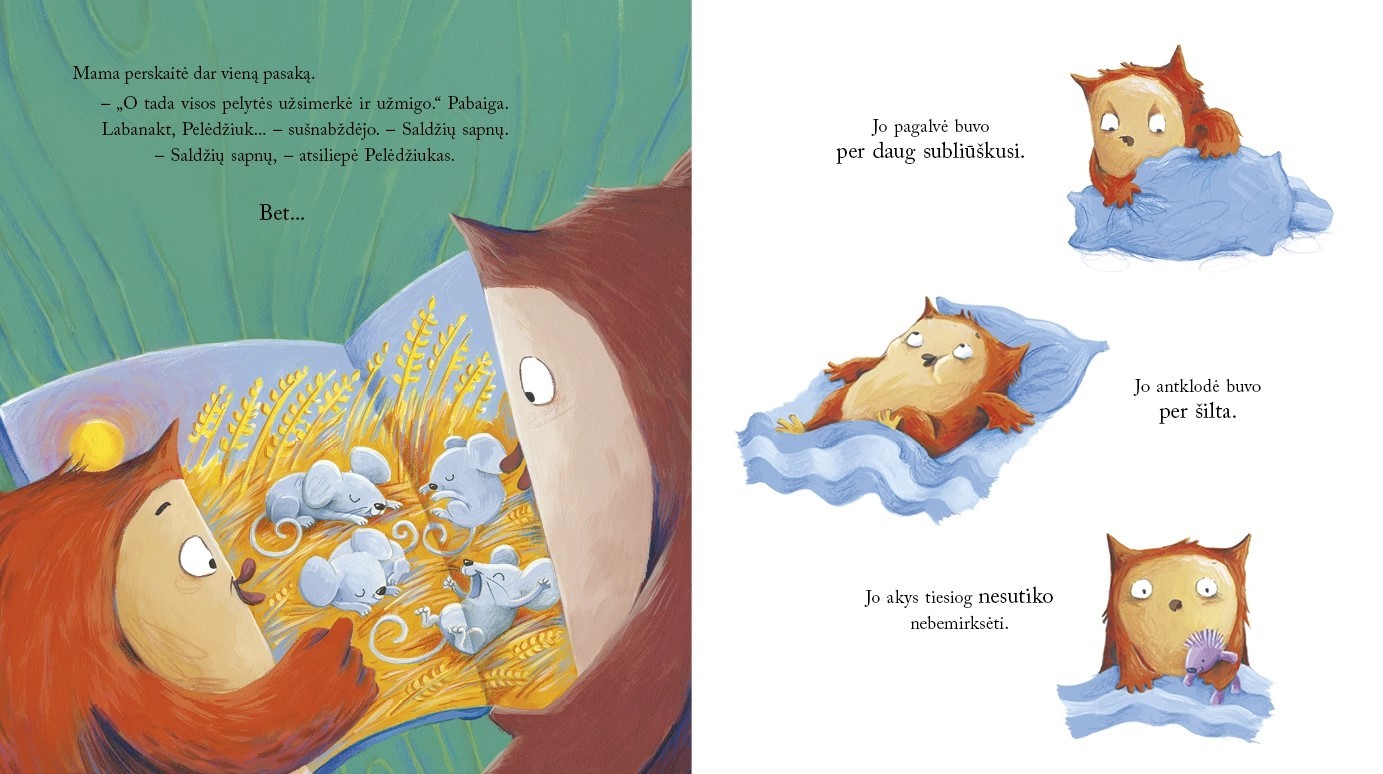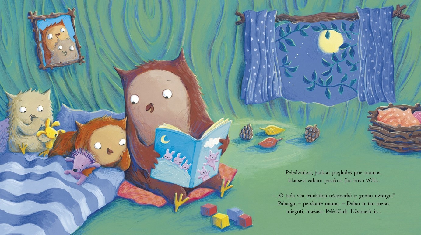 Gal Pelėdžiukui padėtų dar viena „paskutinė“ pasakėlė prieš miegą, o galbūt mama Pelėda turi kitų magiškų būdų nuraminti Pelėdžiuką ir padėti jam jaukiai užmigti?