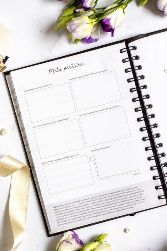 Laimės darbo planuoklis – čia nuguls kasdienės veiklos, užduotys ir darbai. Kalendoriuje yra vietos susirašyti savaitės užduotims, taip pat yra specialūs tikslų išsikėlimo ir grįžtamojo ryšio puslapiai, padėsiantys išlaikyti motyvaciją bei nepasimesti darbų gausybėje.