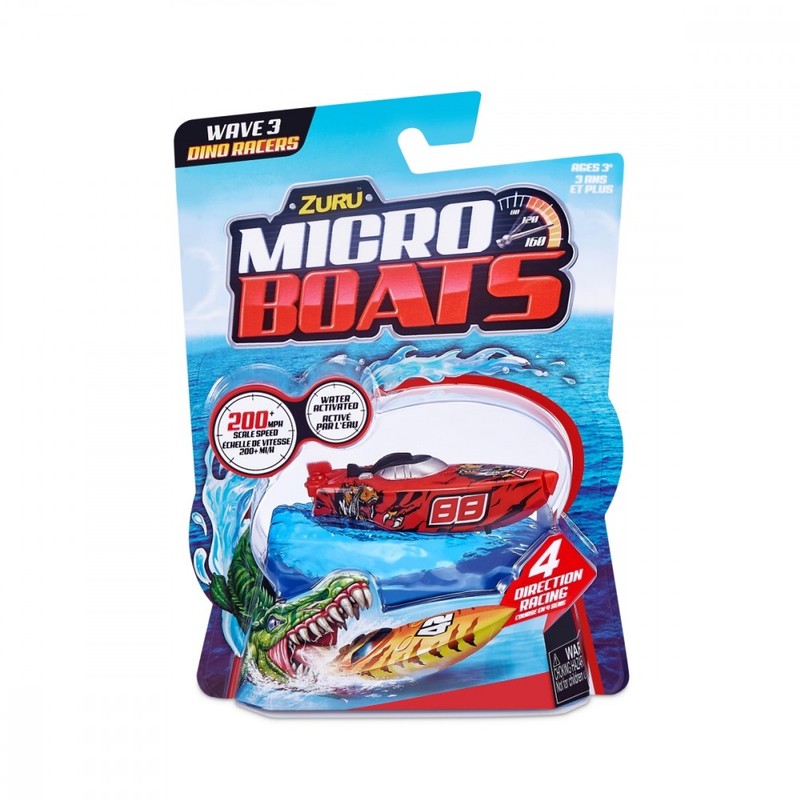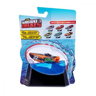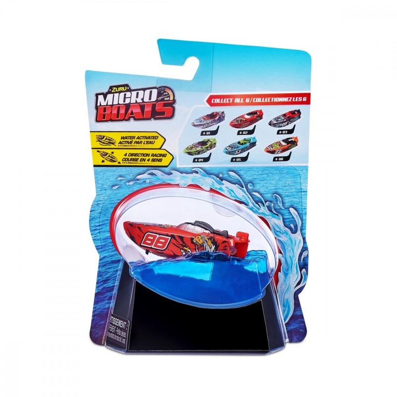 ZURU Micro Laivai yra visiškai motorizuoti, savarankiškai valdantys greitaeigis laivai, kurie atlieka pilnus 360° sukimosi ir automatiškai atbulinėja, susidūrę su siena, dėka naujausios mikrorobotų jutiklių technologijos! Varžykitės visomis keturiomis kryptimis neįtikėtinu 320 km/h greičiu! Išmanioji technologija leidžia Micro Laivams taupyti bateriją, perėjus į miego režimą po tam tikro veiklos kiekio! Norėdami suaktyvinti motorą, tiesiog įdėkite jį į vandenį ir jis automatiškai judės į priekį! Judinkite vairą į skirtingas pozicijas, kad atliktumėte triukus! Varžykitės su draugais arba atlikite beprotiškus triukus įvairiose aplinkose, tokiose kaip baseinas, vonia, kriauklė ar kitas vandens telkinys! Tik horizontas yra riba! Mikro laivai gaminami įvairių spalvų ir modelių, todėl galite juos visus surinkti ir išplėsti savo flotilę!