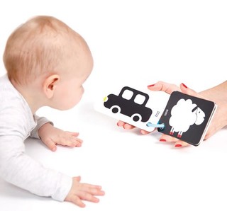 Šios dvipusės kontrastinės kortelės su dvidešimt didelių iliustracijų tinka kūdikiams, kurie gali matyti tik didelio kontrasto spalvas ir skirtingus kontūrus. Paprasti, aiškūs modeliai, pritaikyti prie kūdikių vizualinio suvokimo, patraukia kūdikio dėmesį ir palaiko regos vystymąsi. Plastikinio žiedo dėka korteles taip pat galite pakabinti prie kūdikio lovos ar vežimėlio.