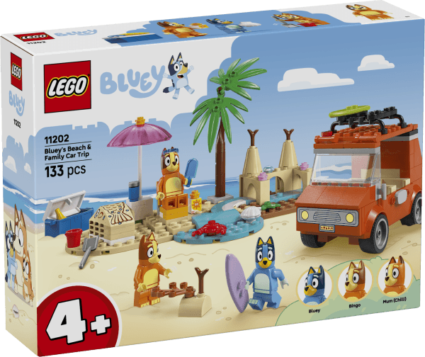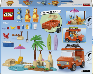 • Interactive building toy for kids – This fun-packed playset features LEGO® minifigures, a toy vehicle and lots of hands-on activities for a fun day at the beach with Bluey, Bingo and Mum