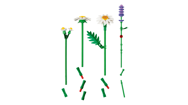 LEGO® FLOWER BOUQUET – Budding florists will have fun building 3 large daisies, 2 stems of small daisies, 3 calming lavenders and vibrant green stems