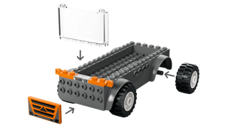 DIMENSIONS – The flatbed truck in this 88-piece building set measures over 3.5 in. (8 cm) high, 5.5 in. (14 cm) long and 2.5 in. (7 cm) wide