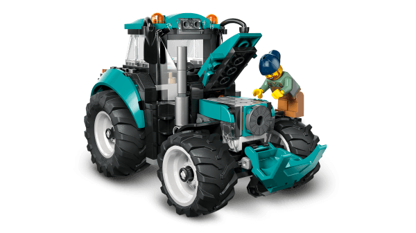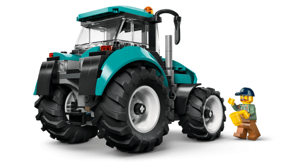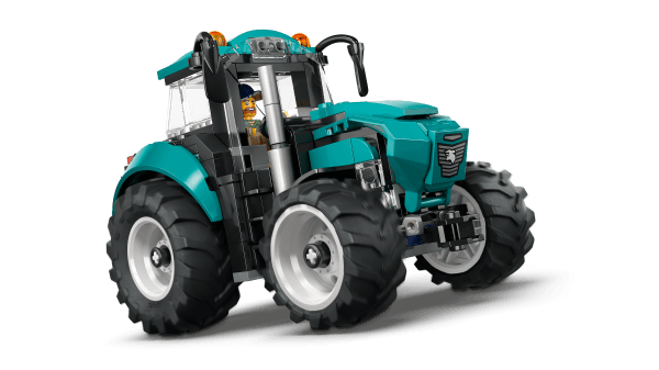WHAT'S IN THE BOX? – This LEGO® tractor set includes everything kids need to build a toy farm tractor with 4 large rubber tractor tires and a fresh teal color scheme, plus a farmer minifigure