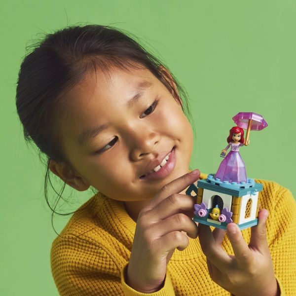 • Buildable model for kids – Treat girls and boys aged 5 and up who love creative role play to this Twirling Ariel building kit and fun Disney’s The Little Mermaid fantasy movie buildable toy display • Disney Princess building kit – The building toy has a stand with turntable and key, an Ariel LEGO® ǀ Disney mini-doll figure in a transforming ’diamond’ dress and a Flounder LEGO ǀ Disney fish figure • Engaging building toy – Turn the key on the stand to spin the plate and twirl Ariel around, then store the LEGO® ǀ Disney mini-doll figure inside the ’diamond’ dress using the umbrella as a lid • Building set for kids – Place the building set with Ariel, her fork and an umbrella on display and add Flounder and the ’diamond’ to the stand, or play out new stories with Ariel and Flounder • Fun gift for girls, boys and kids aged 5 and up – This LEGO® ǀ Disney building set with 2 movie characters and a stand with turning plate makes a fun birthday gift that’s easy to play with on the go • LEGO® ǀ Disney play – Add this building toy to the extensive assortment of LEGO building toys and LEGO ǀ Disney buildable sets (sold separately) in the range • Expand life skills – With 2 LEGO® ǀ Disney characters, a ’diamond’ dress that doubles as storage and a stand with turning plate, this building set fosters creativity and other life skills through fun • Measurements – This 93-piece building set features a stand with a LEGO® ǀ Disney mini-doll figure that, together, measure over 4 in. (11 cm) high, 2 in. (6 cm) wide and 1.5 in. (5 cm) deep