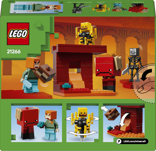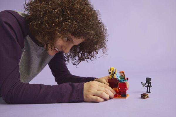 • LEGO® Minecraft® Nether fortress action – Players will need their skills to collect ancient debris, escape a lava fall, battle mobs and ride a Minecraft figure to safety