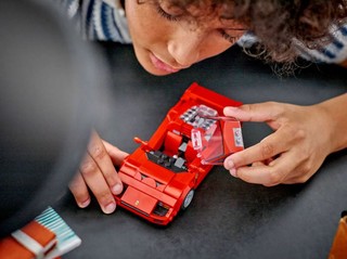 Ferrari žaislas apima F40 ikoninius galinius spoilerius, nosį, išmetimo vamzdžius, ratlankius, oro įsiurbimo detales ir interjerą su prietaisų skydeliu, rankiniu stabdžiu, pavarų perjungikliu, raudonomis sėdynėmis ir vairo mekanizmu. LEGO automobilių rinkinys taip pat turi Ferrari vairuotojo mini figūrėlę, kurią vaikai gali pastatyti už vairo.