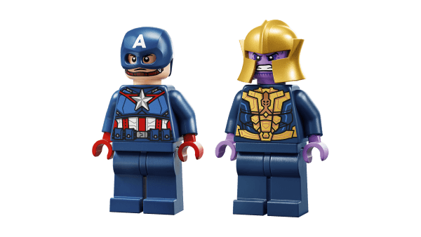 • LEGO® ǀ Marvel minifigures – A Captain America minifigure with his shield and a Thanos minifigures with his helmet put iconic characters into the hands of young Super Heroes as they play