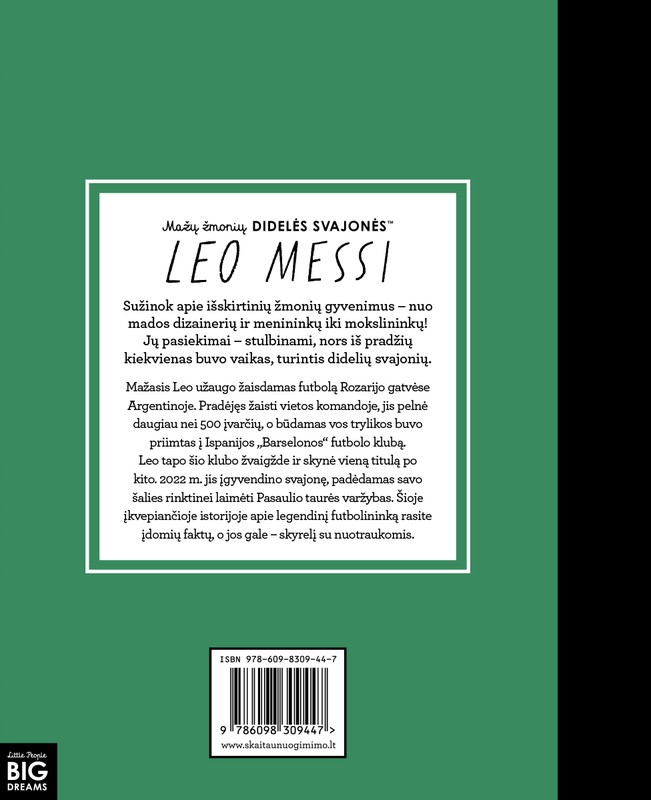 „Mažų žmonių DIDELĖS SVAJONĖS“ (Little People, BIG DREAMS) serijos knygelės supažindina vaikus su žymių žmonių biografijomis įdomiai, neapkraunant per dideliu kiekiu informacijos. Kiekviena biografija prasideda nuo herojaus vaikystės, taip dar labiau įtraukdama mažuosius smalsuolius. Visų šios kritikų išliaupsintos serijos knygelių pabaigoje rasite ir biografijos laiko juostą su realiomis nuotraukomis bei faktais. Nuostabiai iliustruotos, prabangaus kolekcinio formato knygelės gali tapti išskirtine dovana!
