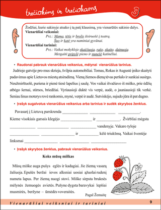 Ši mokomoji knygelė skirta 3 klasės mokiniams, norintiems pagilinti lietuvių kalbos žinias ir įtvirtinti pagrindinius kalbos vartojimo įgūdžius. Autorė Jovita Ponomariovienė pateikia aiškiai struktūruotas užduotis, kurios padės vaikams:
