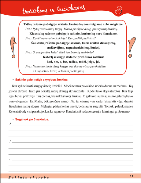Tai praktiška ir patraukliai parengta priemonė, padedanti trečiokams mokytis ne tik taisyklių, bet ir jas pritaikyti realiose kalbinėse situacijose.