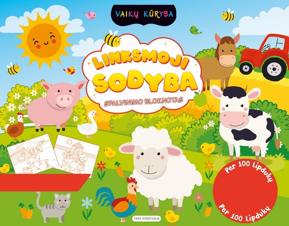 Čiupk šį spalvinimo bloknotą ir leiskis į linksmą kelionę po ūkininko sodybą. Bloknote per 30 smagių kaimo gyvenimo vaizdelių, kuriuos reikia nuspalvinti. Paskui gali papuošti piešinius kokiais tik nori lipdukais iš pridedamų lipdukų lakštų – jų per 100.