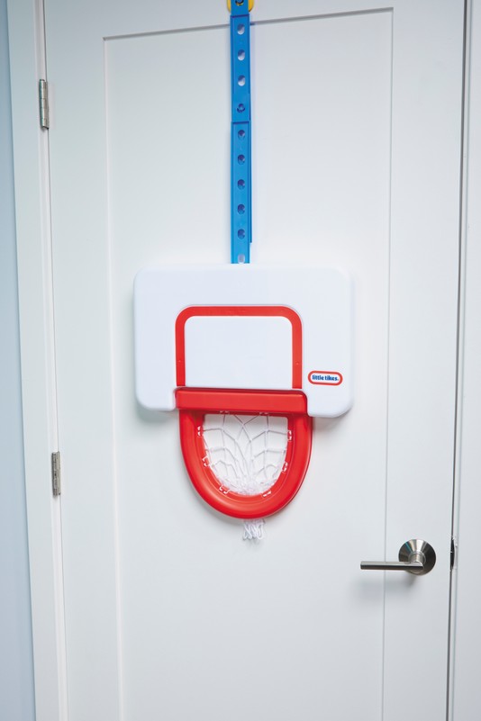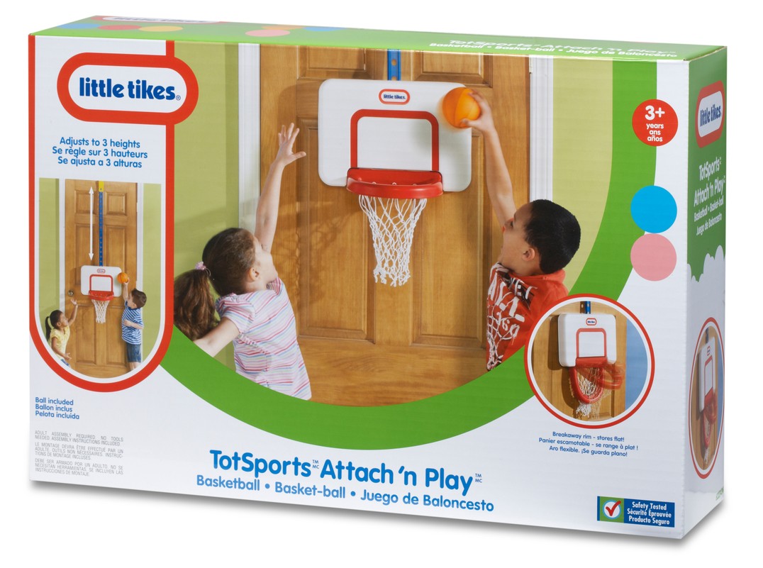 Krepšinį galima žaisti ne tik lauke! Rinkinyje esantį krepšinio lanką galima nustatyti į tris aukščio padėtis ir lengvai pritvirtinti prie bet kokių durų, o mažą kamuoliuką patogiai paimti į mažas rankutes ir nustebinti įspūdingu dėjimu iš viršaus!
