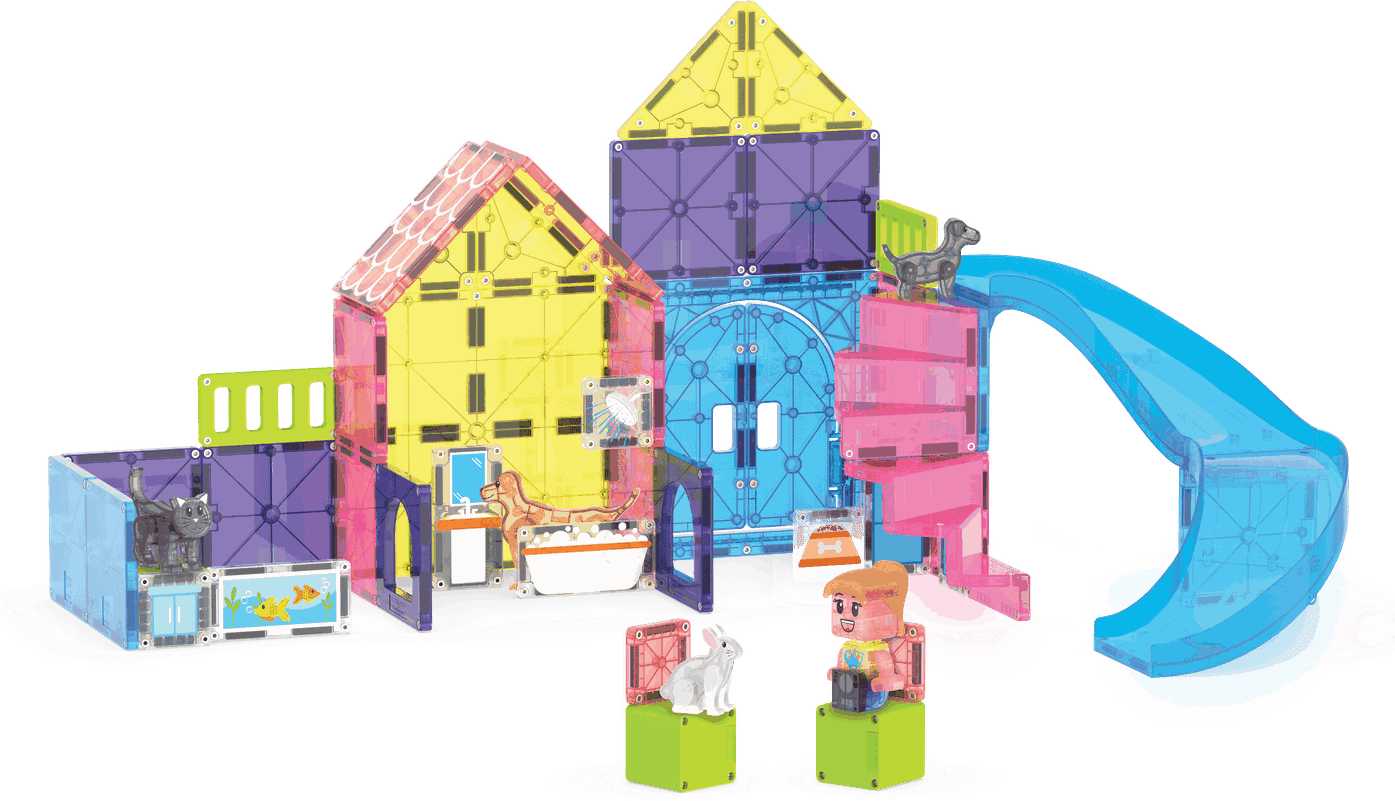 Atverk duris į pasaulį, kuriame gyvūnėliai pasiruošę smagiai pažaisti, o kūrybiškumas neturi jokių ribų! Su MAGNA-TILES konstruktoriumi „Gyvūnų žaidimų namelis“ gali sukurti tikrą rojų savo augintiniams – žaismingiems šuniukams, smalsiam kačiukui ir šokliam zuikučiui. Atverk dvigubas duris ir ženk į žaidimų namelį, kuriame gyvūnėliai gali laipioti, leistis nuo čiuožyklos ir užsiimti kita smagia veikla ir žaidimais. Rinkinyje yra ir gyvūnų prižiūrėtojo figūrėlė, o microMAGS kubeliai leidžia viską pastatyti greitai ir be jokio vargo. Kad būtų dar smagiau, gali sukonstruoti tvoreles ir vartelius, kad išdykėlis šuniukas nepatektų į virtuvę! Gyvūnų žaidimų namelis – tobulas kūrybiškumo ir smagių žaidimų derinys. Ar esi pasiruošęs išlaisvinti vaizduotę? Pažaiskime!