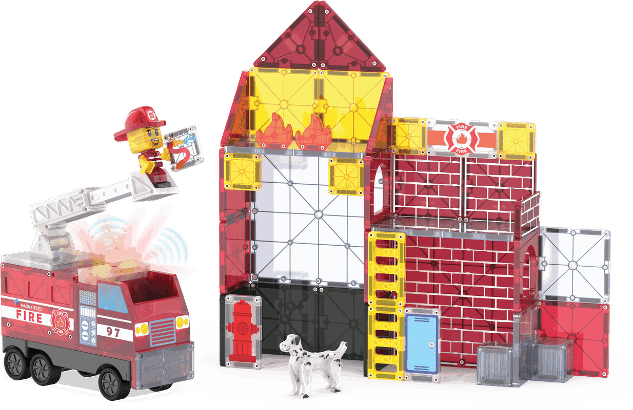 MAGNA-TILES Magnetinis konstruktorius „Ugniagesių stotis“, 50 det.