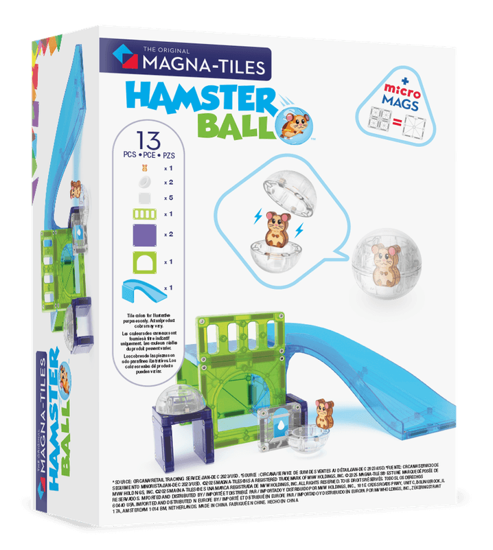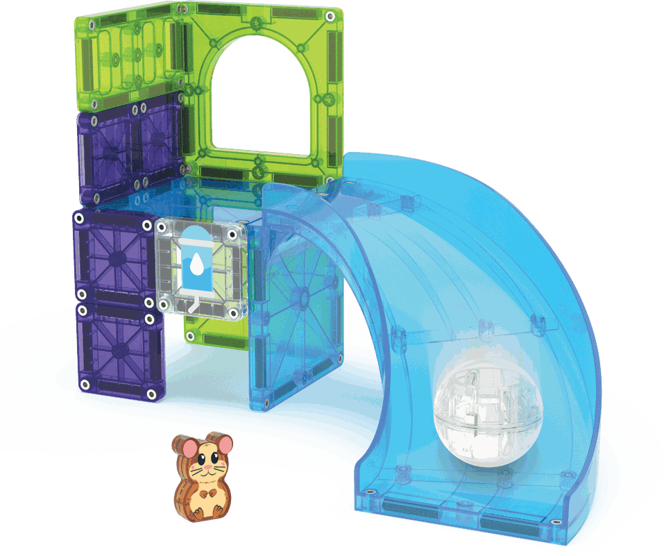 Pasiruošk smagiems žaidimams su MAGNA-TILES žiurkėnu ir jo kamuoliuku! Šis rinkinys – tai kūrybiškumo ir judesio derinys, puikiai tinkantis kiekvienam naminių augintinių mylėtojui. Pasodink žiurkėną į kamuoliuką ir leisk jam riedėti nuo čiuožyklos! Iš magnetinių detalių sukonstruok sieneles ir tvoreles, kaskart sukurdamas vis kitokią trasą! Su microMAGS detalėmis savo konstrukcijoms gali suteikti kūrybiškų akcentų ir dekoracijų ir kiekvieną kartą sukurti kažką unikalaus. Su šiuo rinkiniu smagu žaisti atskirai arba jį gali suderinti su kitais MAGNA-TILES rinkiniais – šuns būda, kačiuko draskykle ar netgi gyvūnėlių žaidimų nameliu (parduodami atskirai). Šis konstruktorius – tai neribotos kūrybiškumo ir vaizduotės galimybės!
