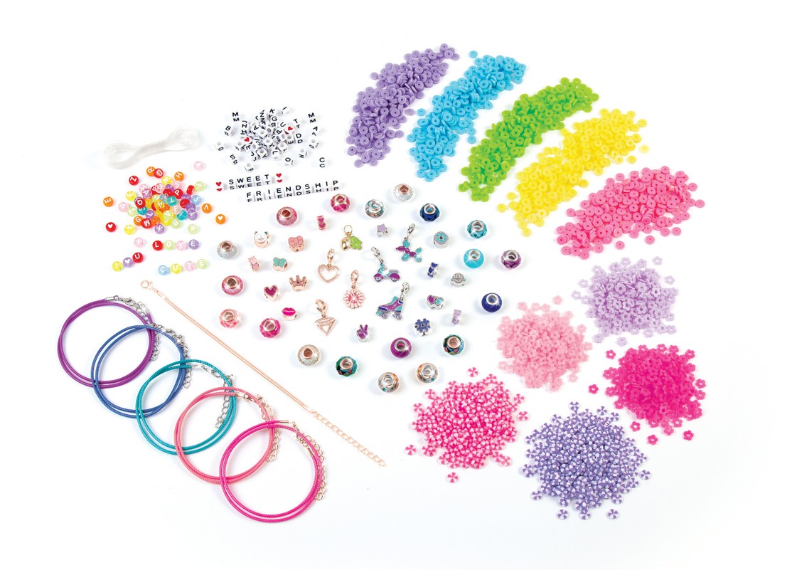 Kūrybinis apyrankių gaminimo rinkinys leis papildyti savo papuošalų kolekciją ir išlaisvinti vaizduotę juos gaminant! Rinkinyje yra virvutės, grandinėlės, pakabučiai ir daugiau kaip 2100 karoliukų, iš kurių galėsi pasigaminti net 30 įvairiausių apyrankių. Karoliukai su raidelėmis leis kurti išskirtines draugystės apyrankes, dovanoti jas draugams ir pasipuošti pačiam. Šis rinkinys bus puiki dovana gimtadienio, atostogų ar bet kokia kita proga! Gaminant apyrankes puikiai lavinama smulkioji motorika ir kūrybiškumas. Rinkinys tinka vaikams nuo 8 metų.