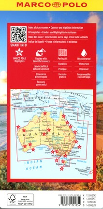 Die MARCO POLO Reisekarte Australien - Die Karte für Urlaubsplaner und Entdeckerinnen im Maßstab 1:4.000.000. Kein Highlight mehr verpassen - die MARCO POLO Karte zeigt die bedeutendsten kulturellen und landschaftlichen Sehenswürdigkeiten auf der Karte und in einer zusätzlichen Online-Sammlung. Im schützenden Kartondeckel sind einige der interessantesten Orte mit Fotos abgebildet. Die Karte ist beidseitig bedruckt und herausnehmbar. Dank dem digitalen Register kann einfach nach Orten gesucht werden. Eine übersichtliche und detailreiche Kartografie macht es einfach, die Karte zu lesen. Auf der Rückseite des Deckels befindet sich eine Übersichtskarte mit allen Highlights. Hilfreiche Details und Verkehrsinformationen machen die Reisekarte auch zur perfekten Straßenkarte: entspannt ankommen und alles gesehen haben. Alle Vorteile der Karte im Überblick: - 20 Marco Polo Highlights - Übersichtliche und detailreiche Kartografie - Smart-Info: Zusätzliche online Informationen wie Register, Highlight-Sammlung und Detaillegende - Wetterfestes Papier - Handliches Kartenformat - Länderinfos auf einen Blick Über die Region: Australien bietet eine vielfältige Landschaft mit Wüsten, Regenwäldern und Küsten. Das Great Barrier Reef ist das größte Korallenriff der Welt. Der Uluru, ein heiliger Berg der Aborigines, ist ein Wahrzeichen im Outback. Sydney beeindruckt mit dem Opernhaus und der Harbour Bridge. Die Great Ocean Road bietet spektakuläre Küstenansichten. Australien vereint Natur und Kultur und lädt zu vielfältigen Erkundungen ein.