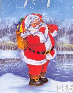Mažas dovanų maišelis su kalėdine iliustracija.