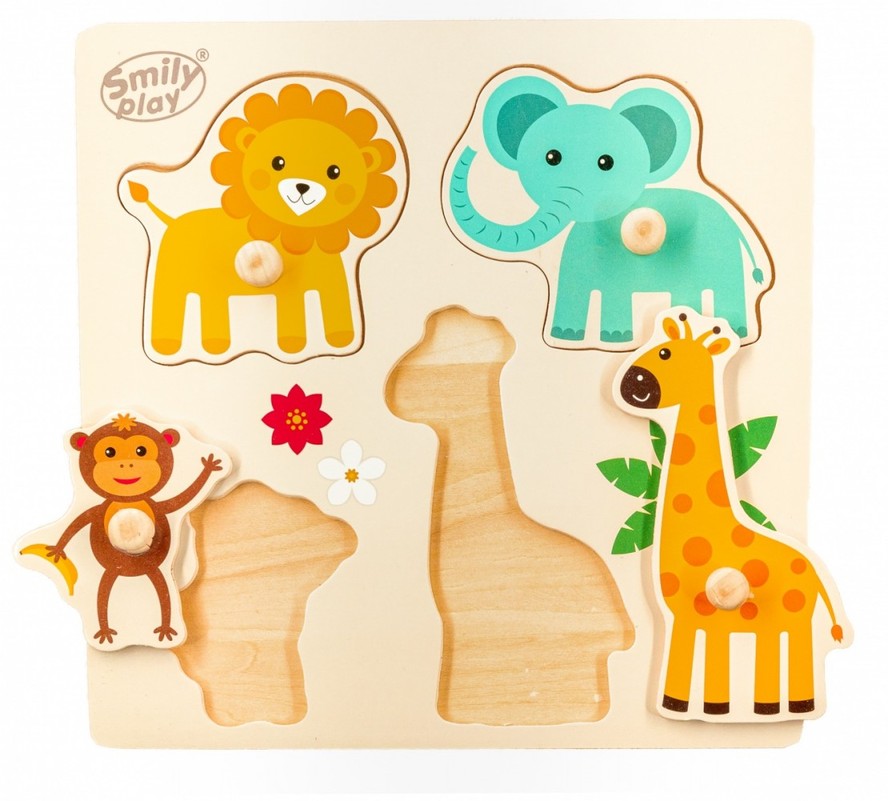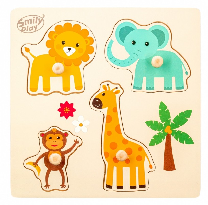 Dėlionės gali būti sudėtos specialiai profiliuotose vietose lenta, pritaikyta šiam tikslui. Kiekviena dėlionės dalis turi rankenėlę, todėl jūsų vaikui lengviau sudėti dėlionę. Dėlionę sudaro keturios dalys ir lenta. Kiekvienas lentos elementas turi skirtingą formą ir spalvą - dėlionės vaizduoja skirtingus gyvūnus, o lenta tarnauja kaip fonas ir papildo paveikslą. Dėlionė padeda: