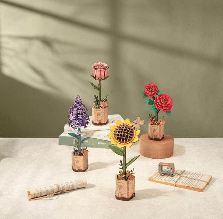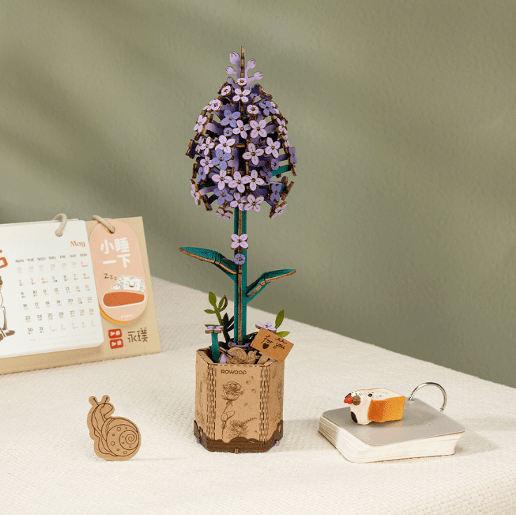 Medinis konstruktorius „Lilac“ iš ROBOTIME–ROWOOD kolekcijos.