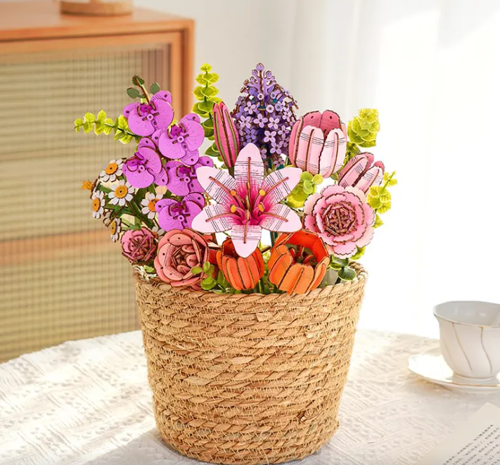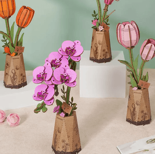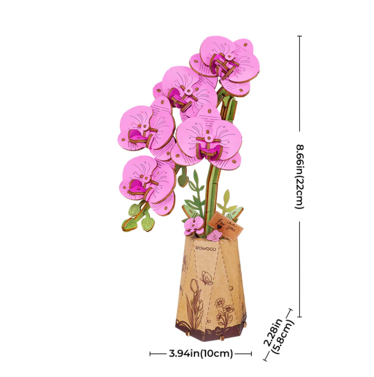 Šis „pasidaryk pats“ medinis konstruktorius leidžia pasigaminti žavingą orchidėją, kurią galima statyti atskirai arba derinti su kitomis „Wooden Bloom Craft“ serijos gėlėmis, sukuriant savo nuostabų puokštės dizainą.