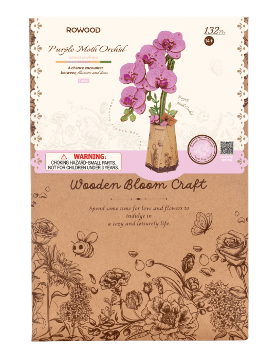 Medinis konstruktorius „Purple Moth Orchid“ iš ROBOTIME–ROWOOD kolekcijos.