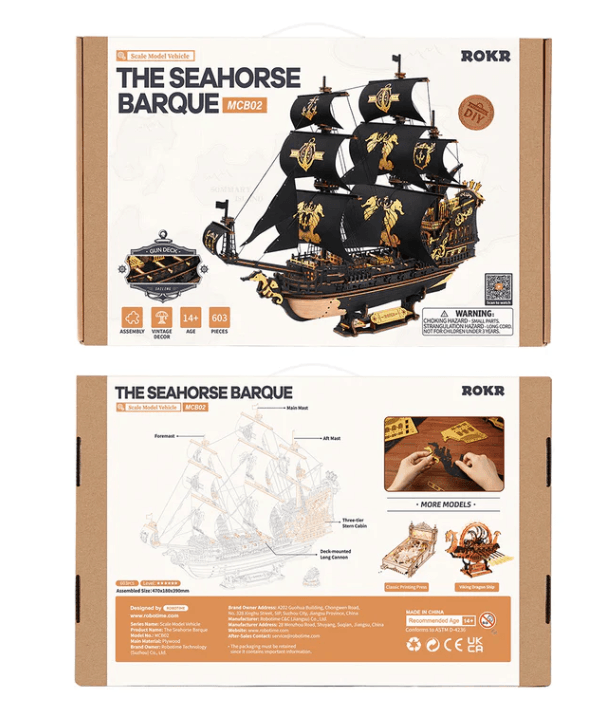 ROBOTIME–ROKR meta jums iššūkį sukonstruoti šį didingą baroko epochos karo laivą su įmantriais raižiniais, įtaigiomis burėmis ir nuožmiu jūrų arkliuku laivo priekyje. Šis 603 detalių „pasidaryk pats“ 3D medinis konstruktorius – tai įtraukianti kelionė į karinio jūrų laivyno aukso amžių.