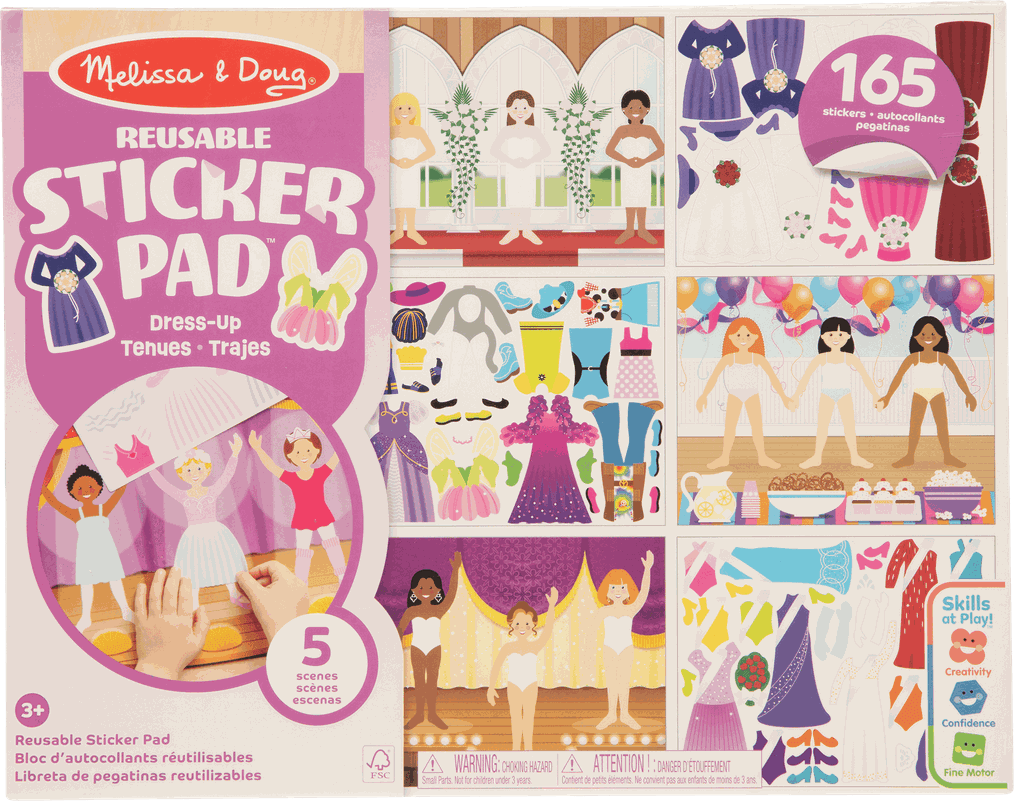5 teminiai paveikslėliai su modeliais ir daugkartiniai lipdukai, kuriuos gali perklijuoti vėl ir vėl ir kaskart sukurti vis naują stilių! Rinkinyje yra daugiau kaip 165 lipdukai (sijonai, suknelės ir įvairiausi aksesuarai)!
