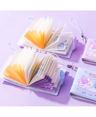 Mielas pakabukas su mini užrašų knygele. Pakuotėje 2 vnt. Knygelės matmenys 4 x 4,5 cm, 49 psl., užsegama lipuku. Dalis puslapių langeliais, dalis balti. Puslapiai su įvairių spalvų piešinukais. Pakabukas tinka kabinti ant raktų, mobiliojo telefono, kuprinės. Žavinga dovanėlė vaikams.