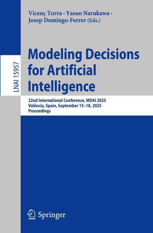 This book constitutes the refereed proceedings of the 22nd International Conference on Modeling Decisions for Artificial Intelligence, MDAI 2025, held in Valencia, Spain, during September 15-18, 2025.