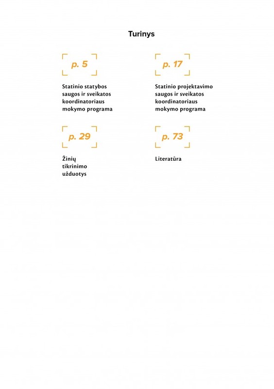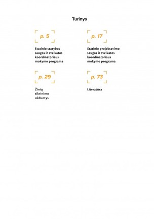 Šiame leidinyje pateiktos programos tikslas – parengti statinio statybos saugos ir sveikatos koordinatorius ir įvertinti jų pasirengimą atlikti pareigas. Nedidelėje metodinėje priemonėje yra visa būtina informacija šios srities specialistams: nuo teisės aktų ir programos apžvalgos iki užduočių, kurios padės įtvirtinti sukauptas žinias.