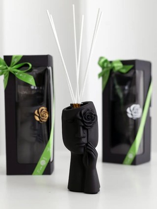 Išskirtinis rankų darbo namų kvapas – mažos statulėlės formos, įkvėptas skandinaviško stiliaus, pagamintas iš keramikinio gipso. Gintaro spalvos 20 ml buteliukas su kvapiuoju skysčiu įstatomas į statulėlės vidų.