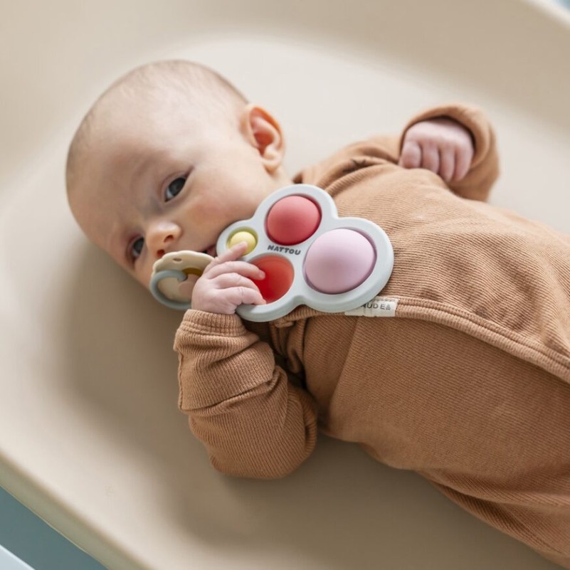 Žaislas POP IT pagamintas iš minkšto silikono, kurio sudėtyje nėra BPA, todėl yra saugus ir draugiškas vaikui. Tai lavinantis žaislas, puikiai telpantis mažose rankutėse, kuris stimuliuoja ir lavina mažylio motoriką. Spaudžiami įvairių tekstūrų rutuliukai skleidžia garsą ir skatina tęsti žaidimą. Be to, POP IT galima naudoti ir kaip kramtuką dygstant pirmiesiems dantukams!