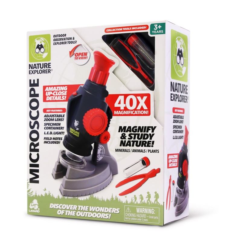 Atrask tikrus gamtos stebuklus su šiuo mikroskopu iš kolekcijos „Nature Explorer“! Rink mineralus, mažus vabzdžius, augalus ir ką tik panorėsi, o tada viską stebėk iš labai arti ir pasinerk į visiškai naują neatrastą pasaulį. Mikroskopas didina 40 kartų ir veikia visai kaip tikras!