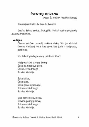 Šioje knygoje pateikiami scenarijai tinka doriniam pradinukų ugdymui, supažindinant su Šv. Rašto tiesomis, atskleidžiant Kalėdų ir Velykų švenčių prasmingumą.