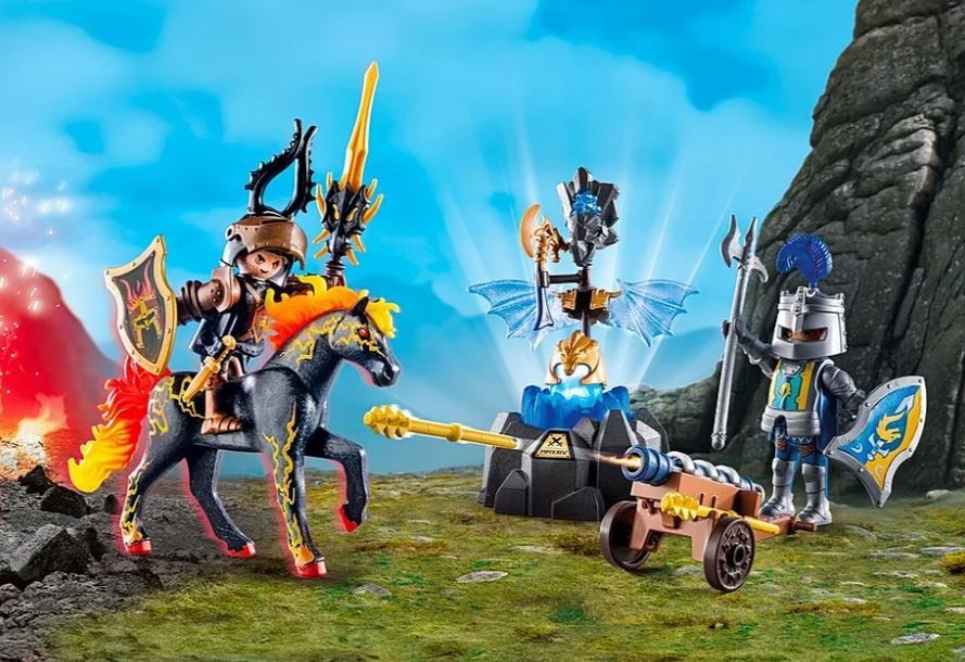 Su kūrybingais ginklais, išradingomis gynybos sistemomis ir originaliais personažais, PLAYMOBIL riterių pasaulis kviečia jus vaidinti naujus nuotykius. Puikiai tinka dovanai ar siurprizui riterių gerbėjams nuo 4 metų ir vyresniems.