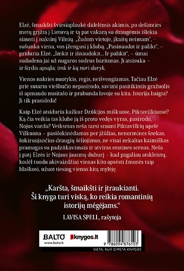 Elzė su draugėmis vyksta į naktinį klubą pašokti, kur susipažįsta su Nojumi.. Tik jam pasako netikrą vardą. Kitos dienos ryte jie vėl susitinka – restorane, kur jo sūnus stipriai susižeidžia ir Elzė jį išgelbėja. O Nojus nuomuoti pradeda sodybą Piktavilkiuose... na, o Elzė kaip tik ieško trobos kokiame kaime... KAIP AŠ LAUKIAU ŠITOS KNYGOS!!! Ir neturiu žodžių apsakyti, kaip man patiko šita knyga! Jau nuo pirmų žodžių įtraukė ir sudomino. O kaip gražu, kad autorė ir dzūkišką tarmę panaudojo ir net žemėlapį nupiešė. O jau sekso scenos kokios karštos ir atviros! Knyga tikrai mano skonio ir nors tokia stora, bet neatrodė ištęsta – viskas savo vietoje ir puikiai suderinta. Patiko man labai Smiltė – tokia keikūnė kaip ir aš. O labiausiai tai katinas Brazauskas. Norėjosi, kad jis daugiau veiksmo gautų, bet yra kaip yra. Reksas-Grikis užtat susilaukė daug dėmesio. Galiu pasakyti kad knyga labai nuotaikinga ir linksma kaip ir pati autorė. Tad lauksiu kitos knygos, jei tik parašys. Rekomenduoju visiems ištroškusiems karšto sekso ir humoro.