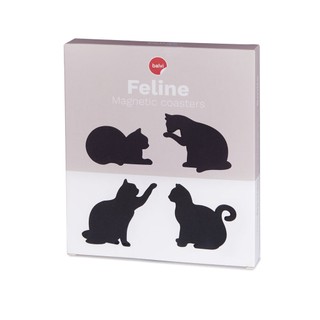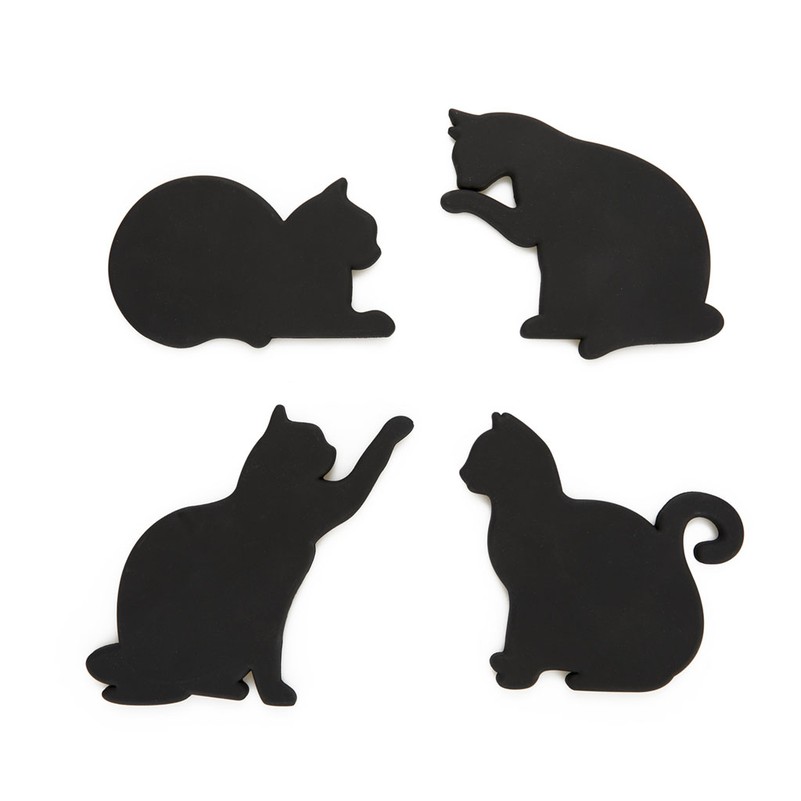 Balvi padėkliukai „Cat“ juodos spalvos, 4 vnt. padėkliukų rinkinys kačių pavidalu. Pridedami magnetai, kad juos būtų galima pritvirtinti prie šaldytuvo durelių ar kitų metalinių laikiklių.