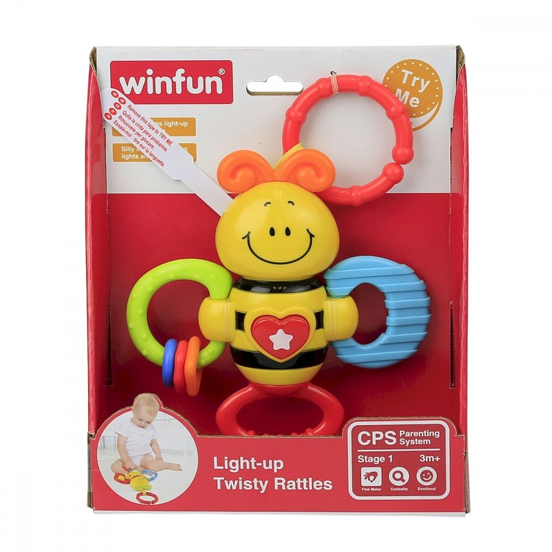 Linksmas barškutis yra labai funkcionalus ir patrauklus. Kai jūsų mažylis kratys žaislą, jis arba ji girdi barškėjimo žiedus.