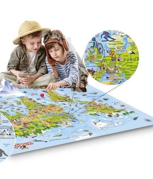 Tyrinėkite pasaulį. „Vaikiškas pasaulio žemėlapis“ yra įdomus būdas mokyti vaikus apie pasaulį, kuriame gyvename. Šiame žemėlapyje yra daugiau nei 280 iliustracijų, taip pat šalių, upių, ežerų, vandenynų, žinomiausių objektų, žinduolių, roplių, varliagyvių, paukščių. Jame galite pamatyti gausybę įvairiausių gyvūnų ir įžymių vietų, festivalių, sportų ar patiekalų. Neribotos smagumo valandos pasaulio tyrinėjimui!