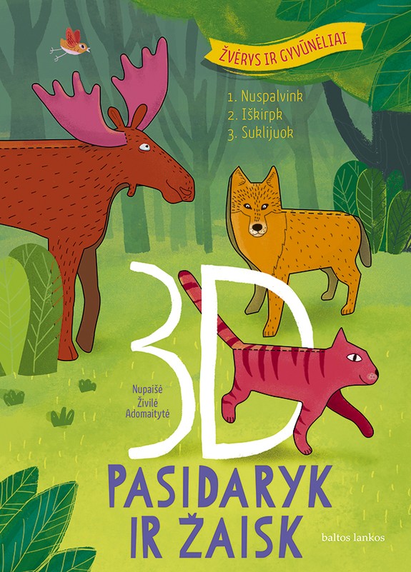 Spalvinimo ir karpinių knygelė „Pasidaryk ir žaisk: 3D žvėrys ir gyvūnėliai" kviečia susikurti savą žvėrelių ir gyvūnėlių pasaulį. Nuspalvinęs, iškirpęs ir suklijavęs knygelės piešinius vaikas savo susikurtame miške, krūmynuose ir žolynuose galės apgyvendinti vilką, lapę, briedį, barsuką, šuniuką ir katinėlį, arklį ar vienaragį, avelę, triušį bei kitus miško žvėrelius, paukščius ir naminius gyvūnėlius.